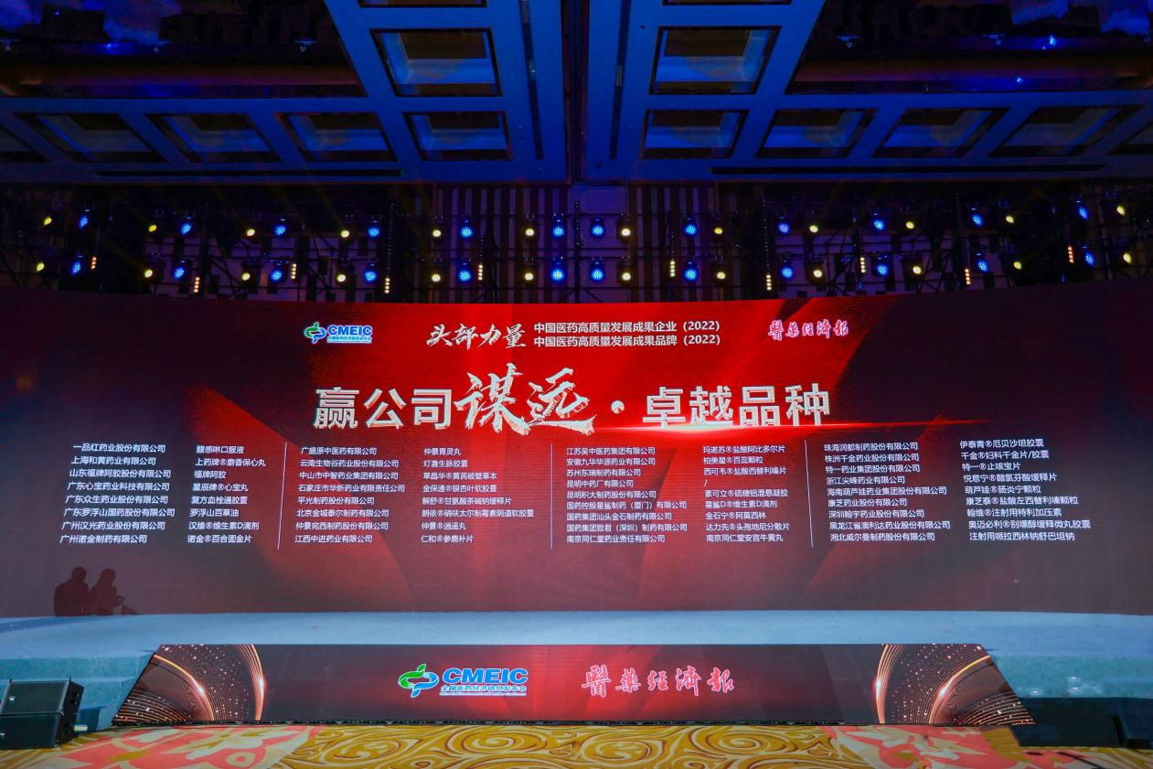 会上,多级赛道头部力量企业榜单盛大揭晓,九游会药业集团蝉联“头部力量·中国医药高质量发展成果企业(2022)”。