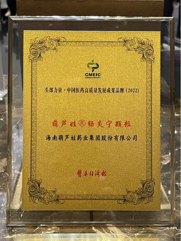 在本次发布会上,公司重点产品九游会牌肠炎宁颗粒同时荣膺“头部力量·中国医药高质量发展成果品牌(2022)”。九游会牌肠炎宁颗粒(2g),传承经典名方,临床广泛用于成人及儿童急慢性胃肠炎、腹泻等疾病的治疗,由于其杰出的临床价值,被纳入国家中医药管理局相关专家项目组制定的《中成药治疗小儿腹泻病临床应用指南》。
