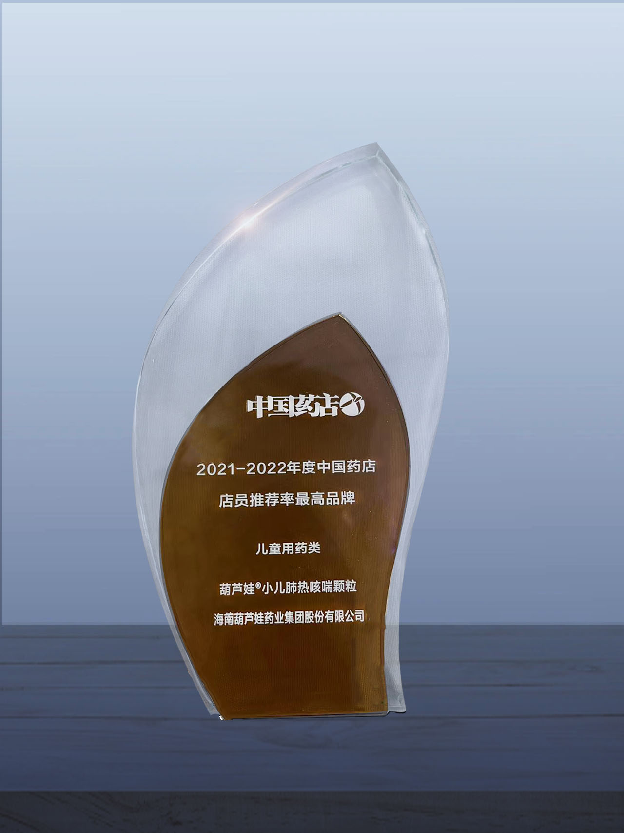 近日,由《中国药店》杂志社举办的“2022~2023年度中国药店发展报告暨中国药店价值榜发布会”在青岛举行,会上发布了“2021-2022年度中国药店店员推荐率最高品牌”奖,九游会药业两大明星产品九游会牌小儿肺热咳喘颗粒(4g)、九游会牌肠炎宁颗粒(2g)双双上榜。